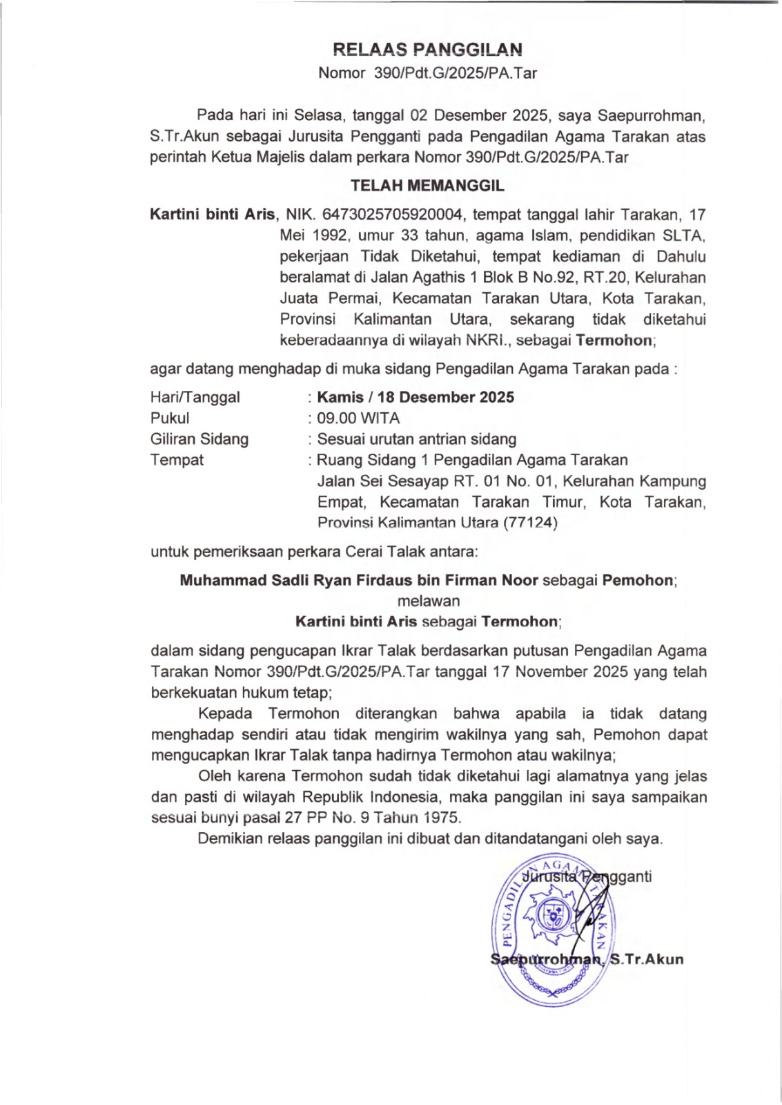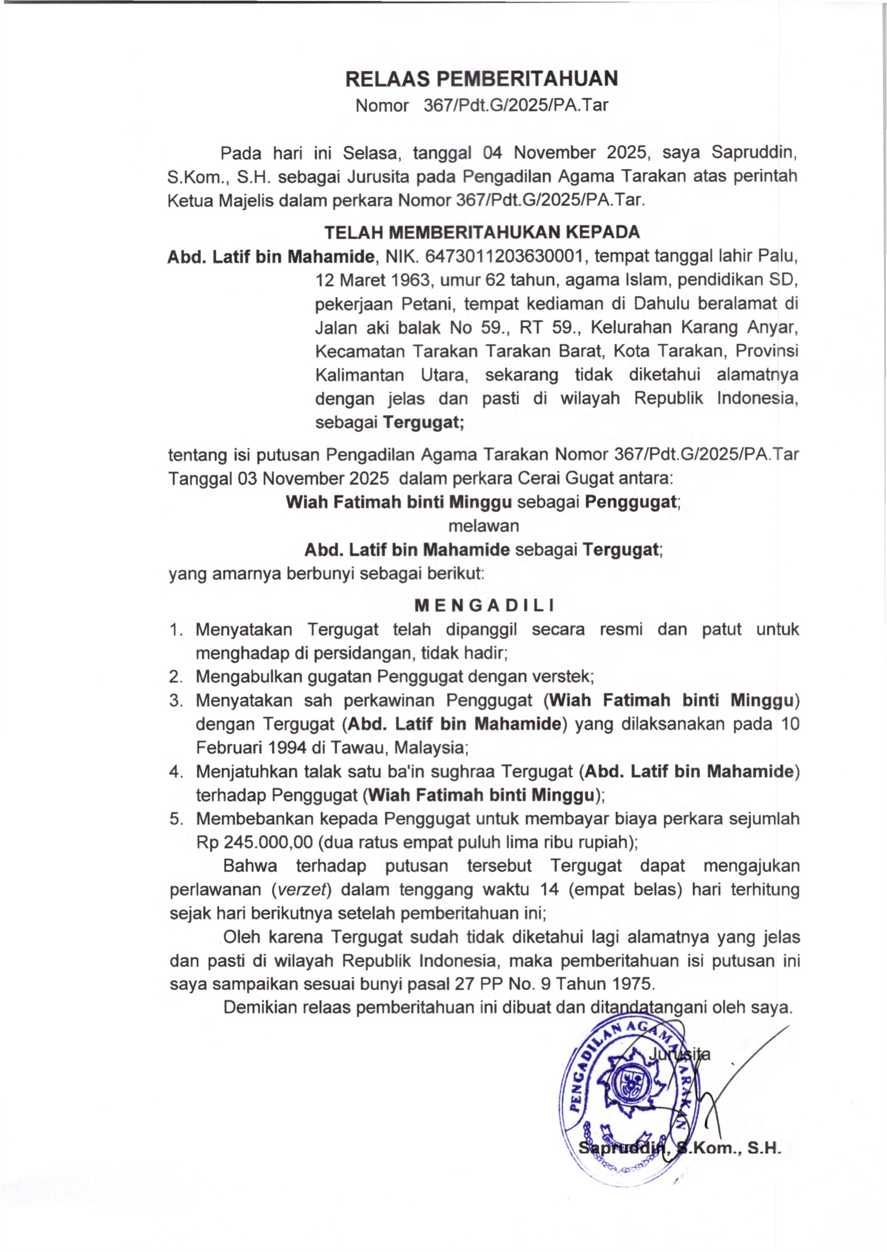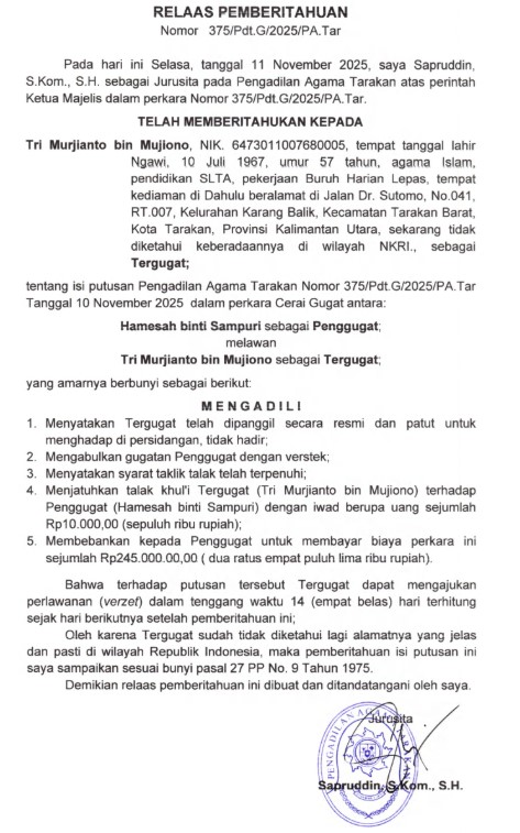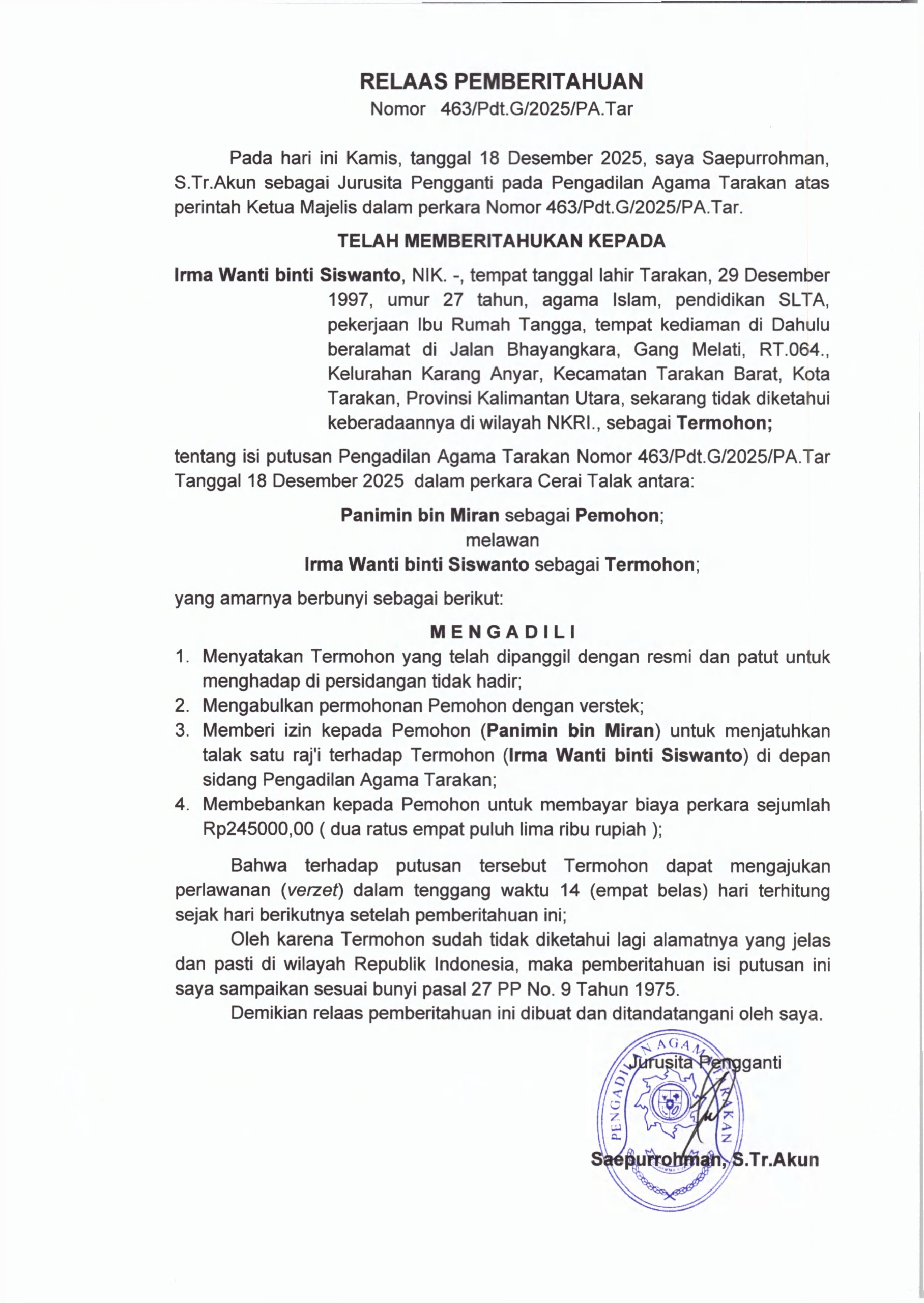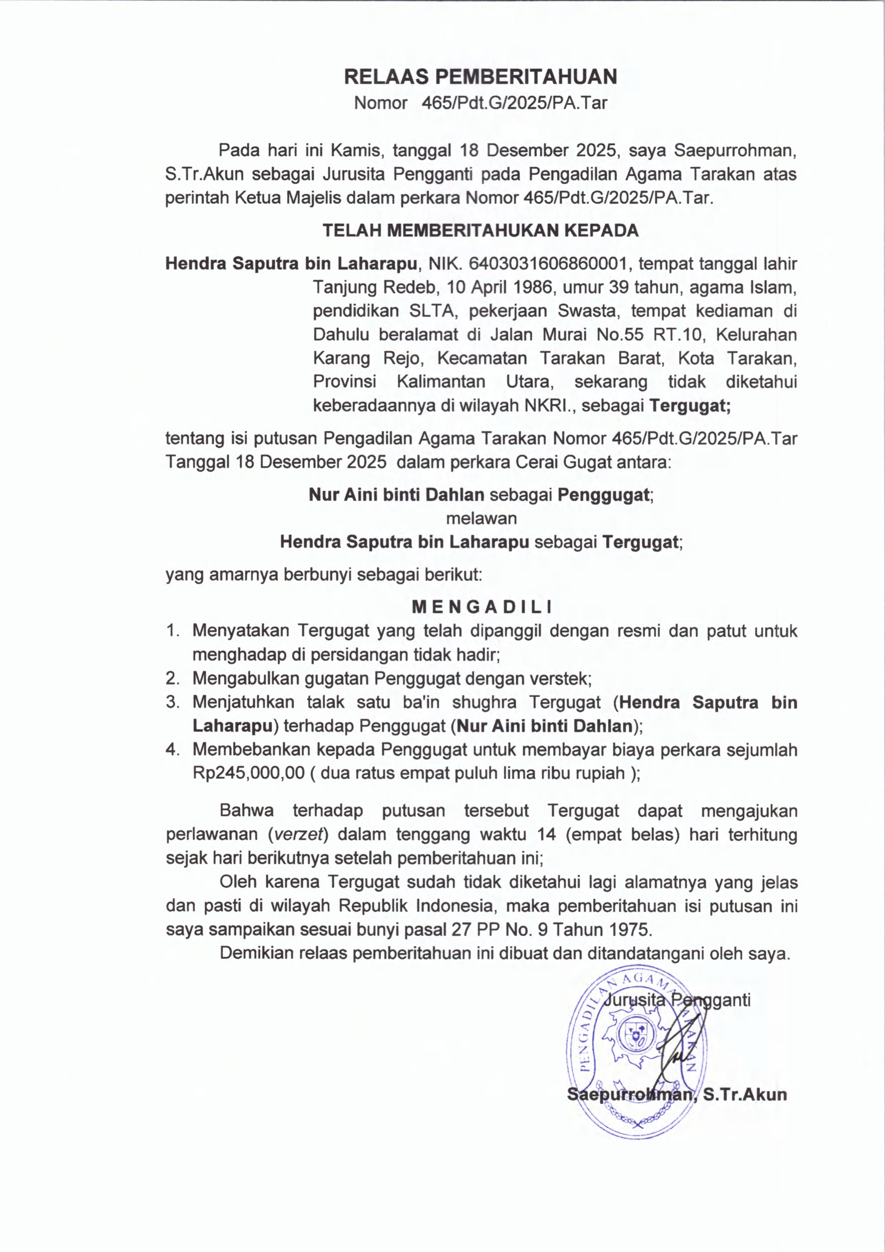 Perceraian Gaib : antara kehadiran pasangan dan kepastian hukum