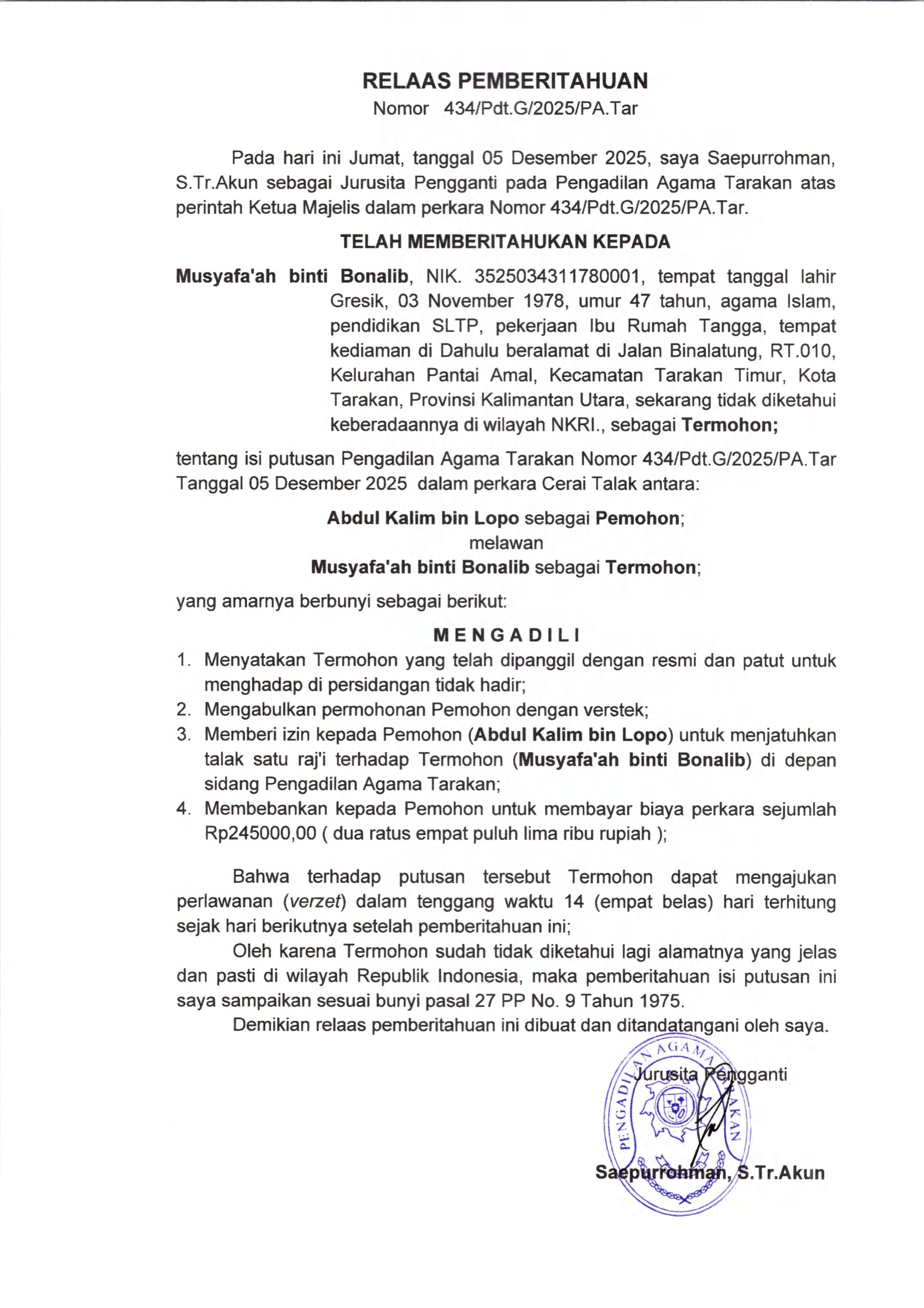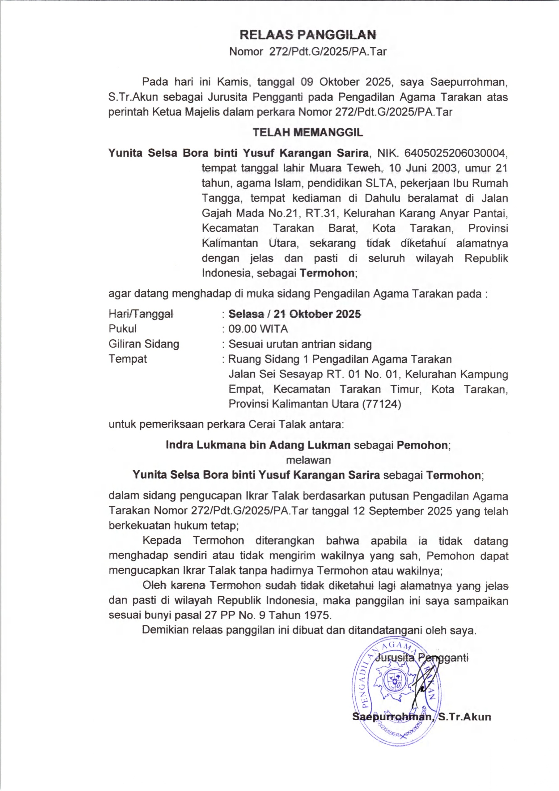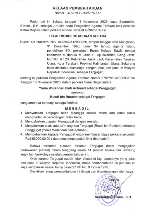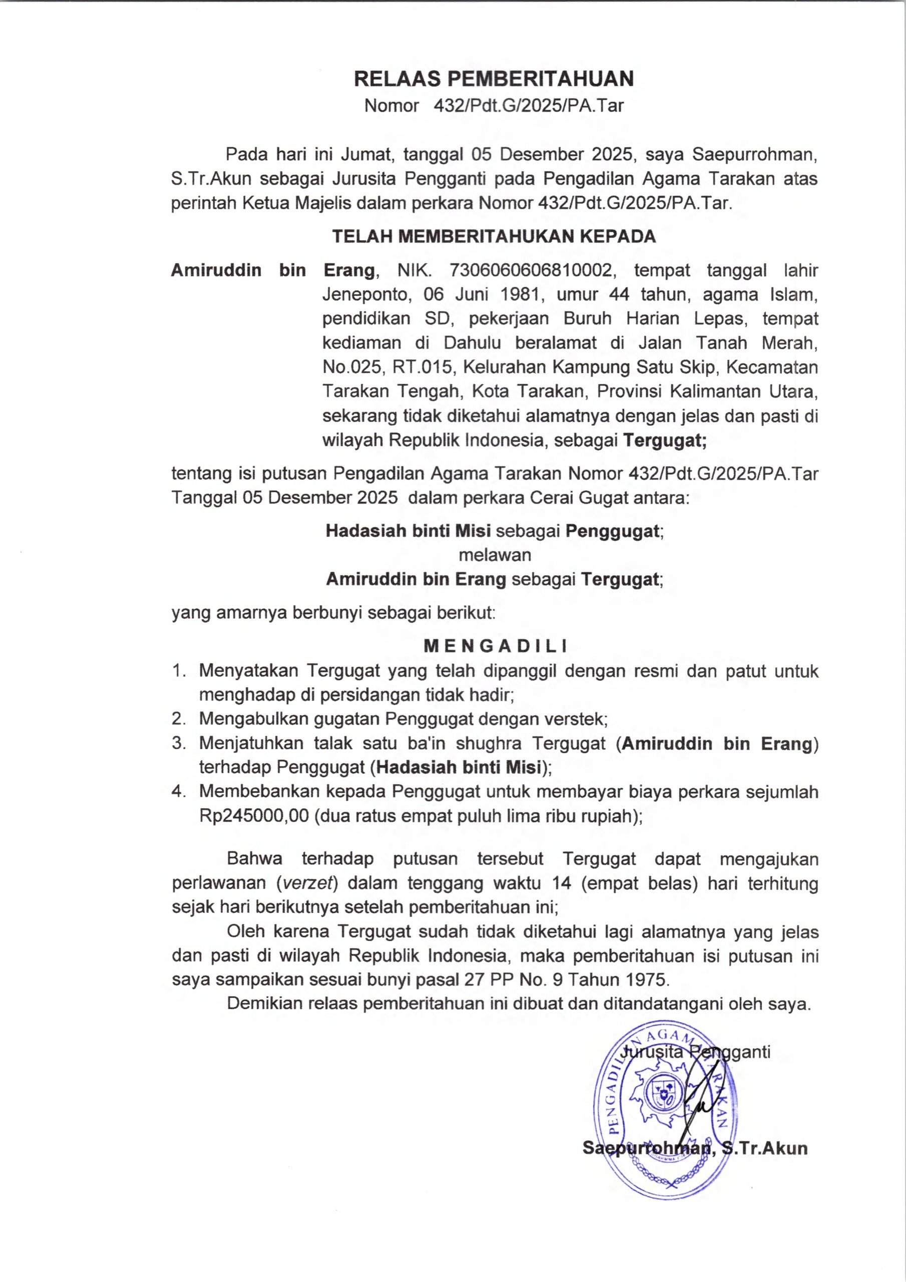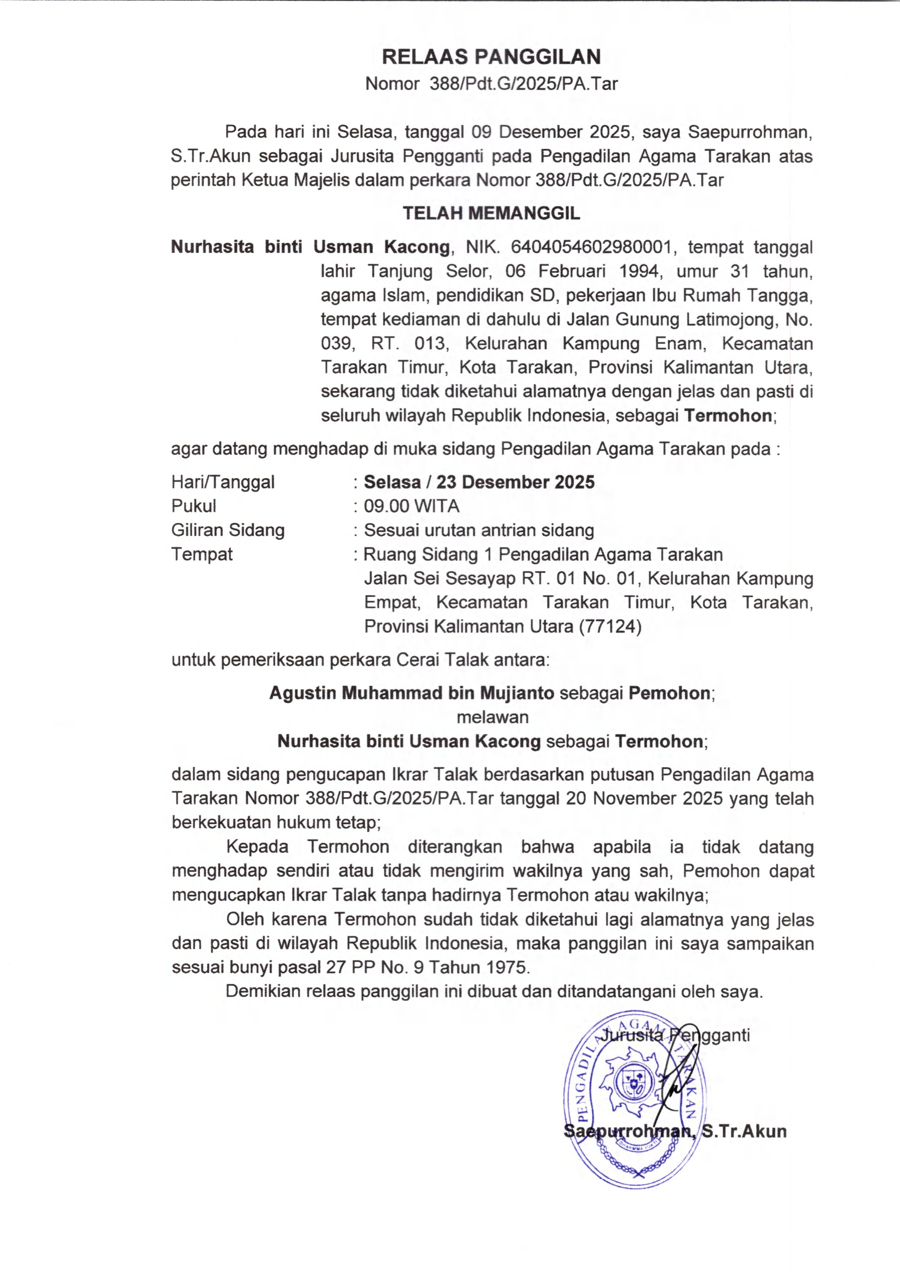 Perceraian Gaib : antara kehadiran pasangan dan kepastian hukum