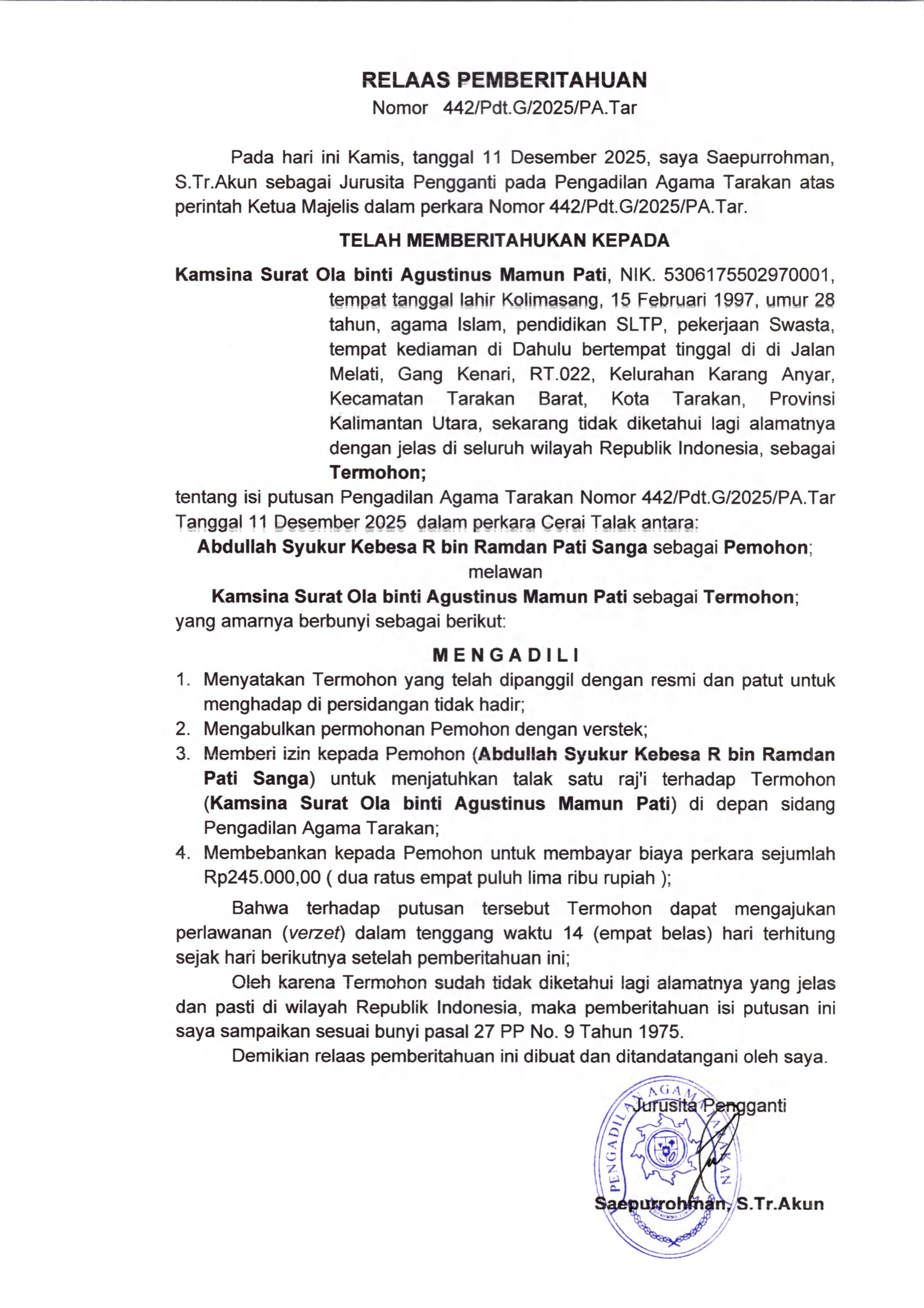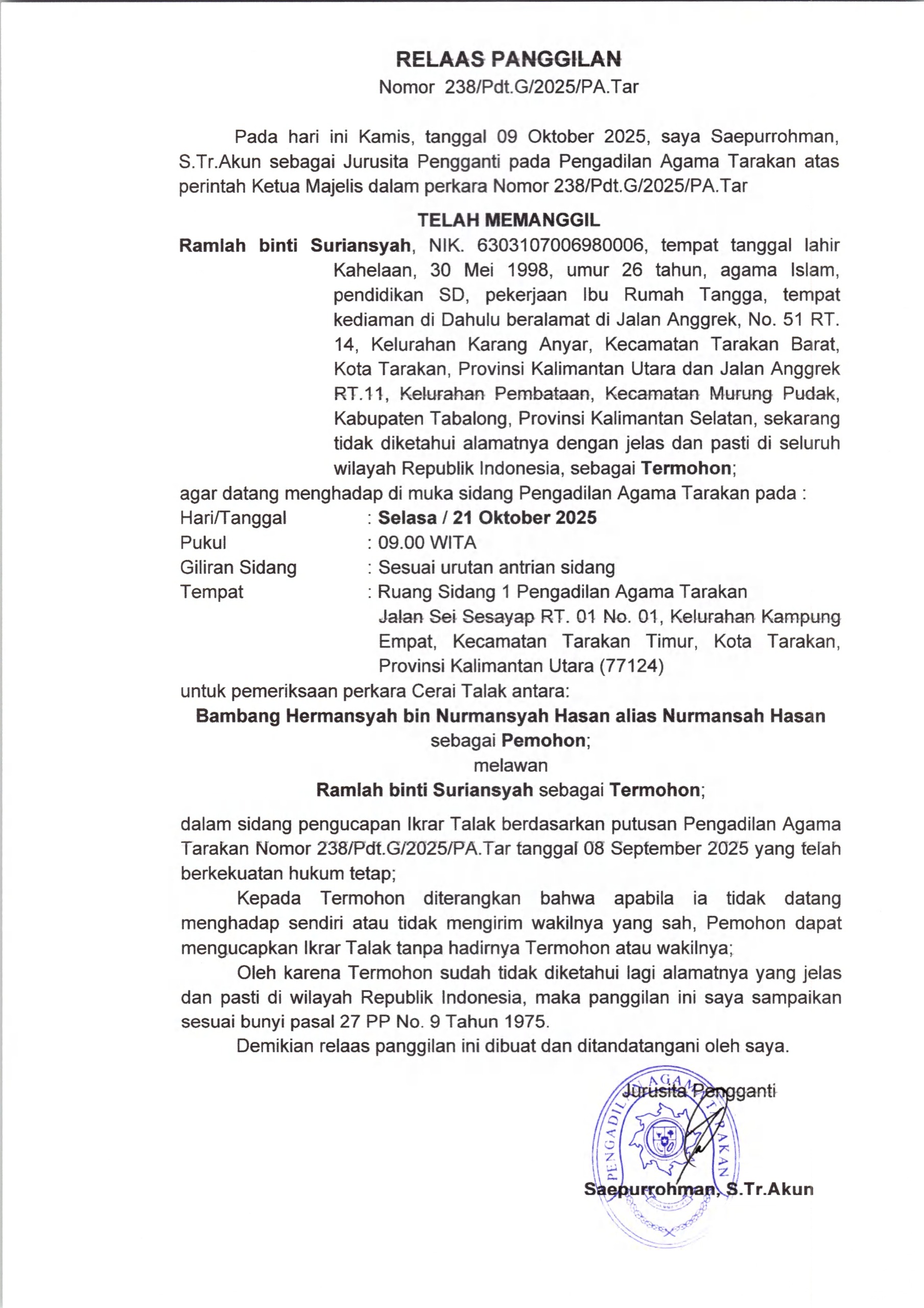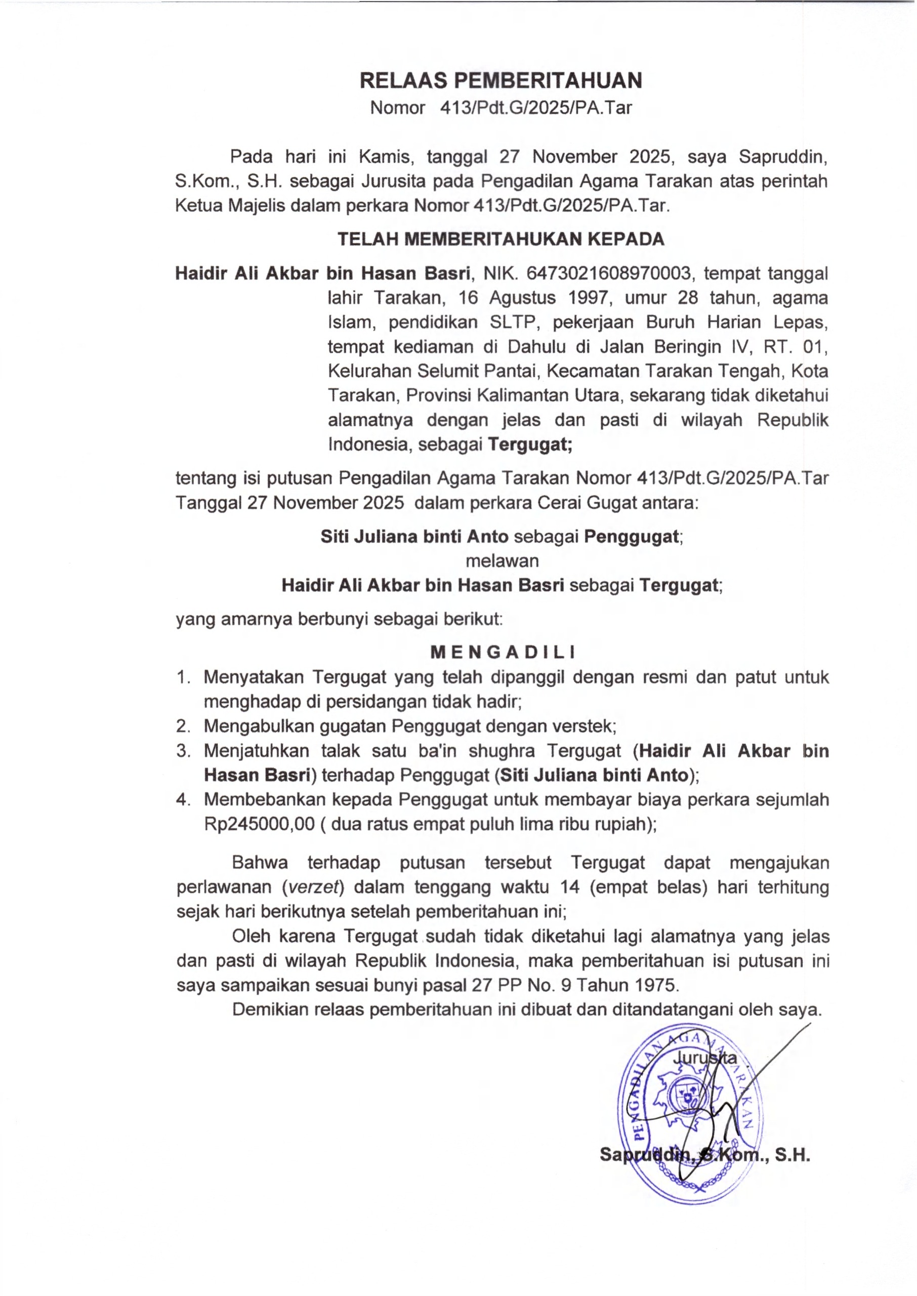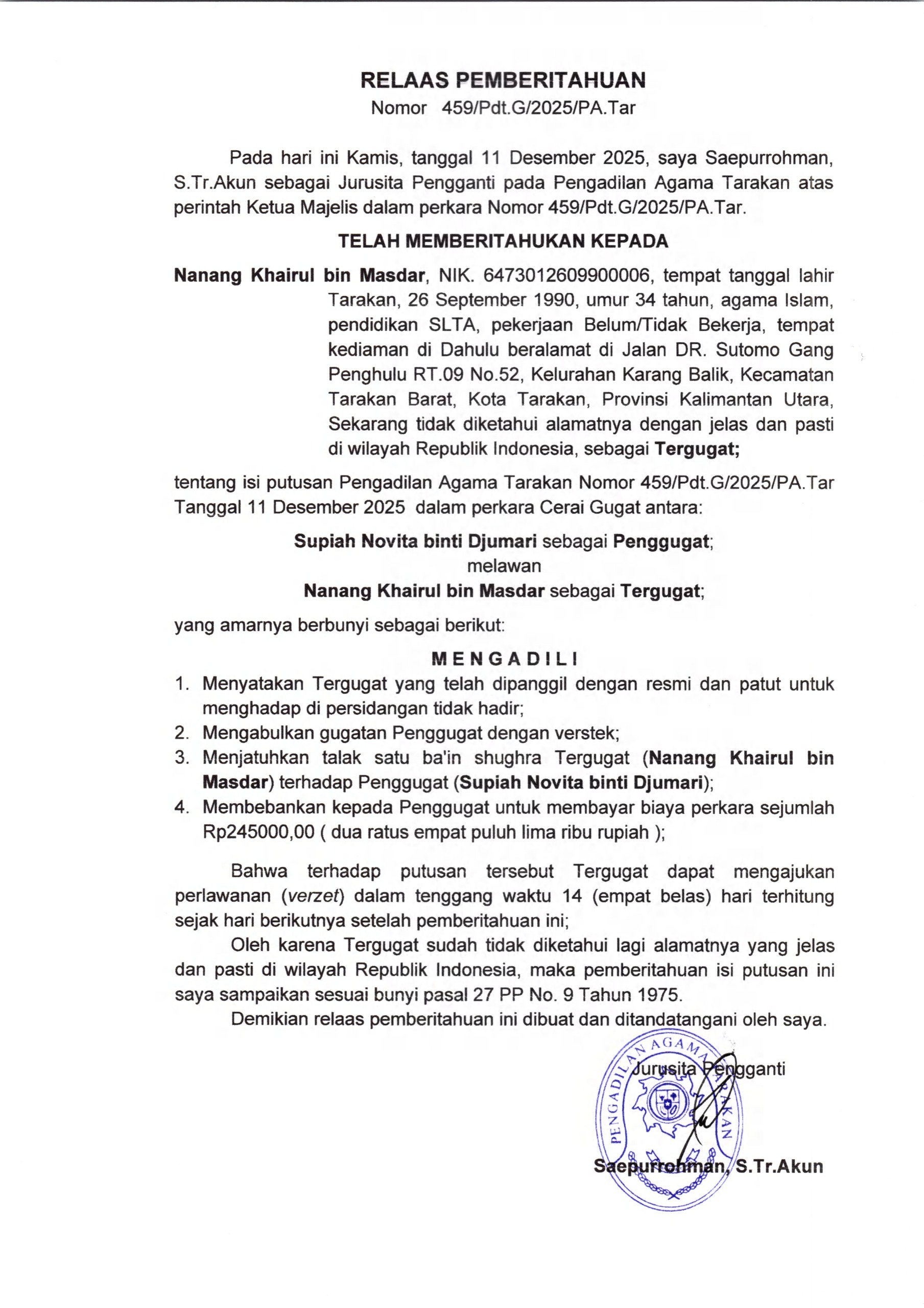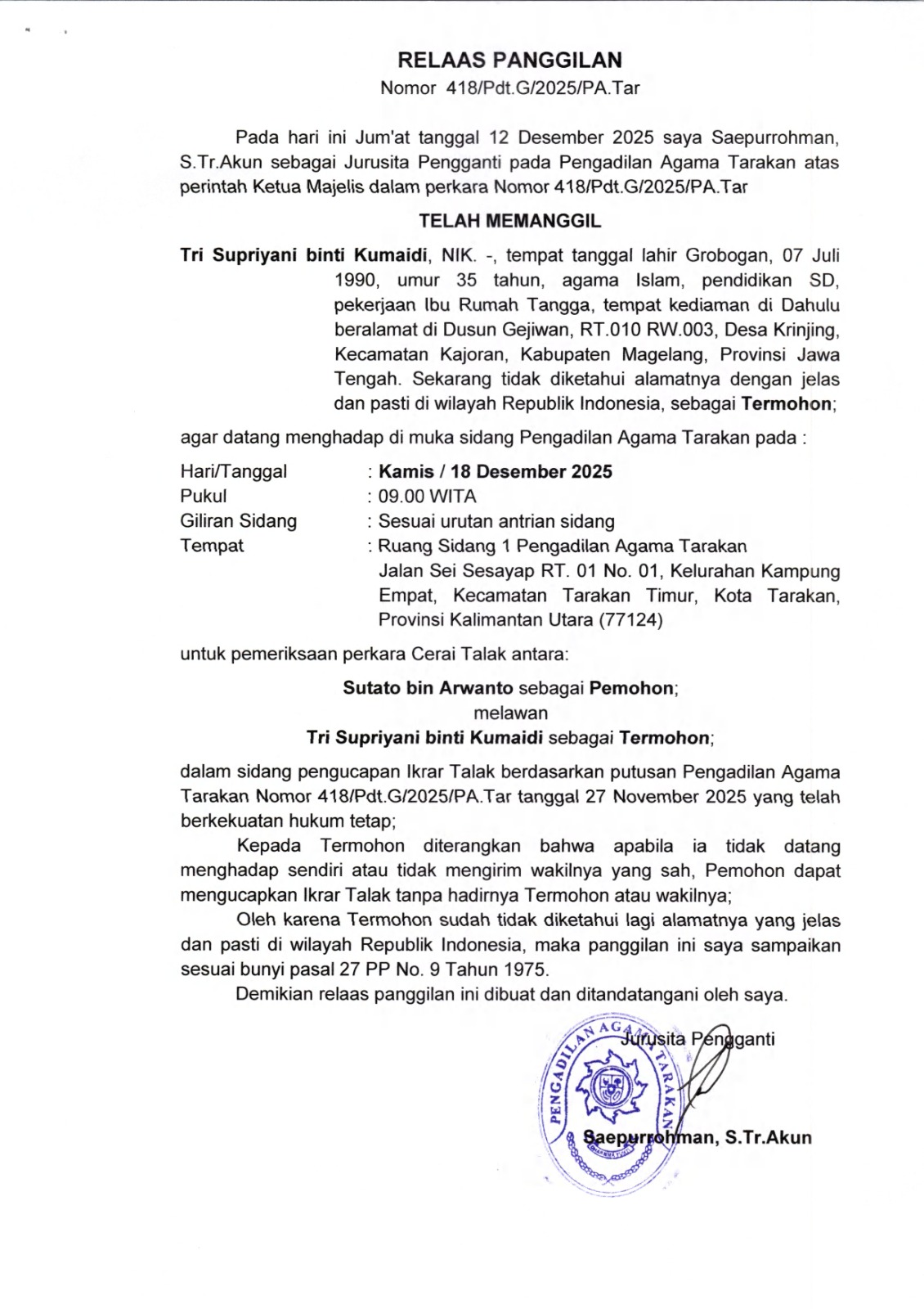 Perceraian Gaib : antara kehadiran pasangan dan kepastian hukum
