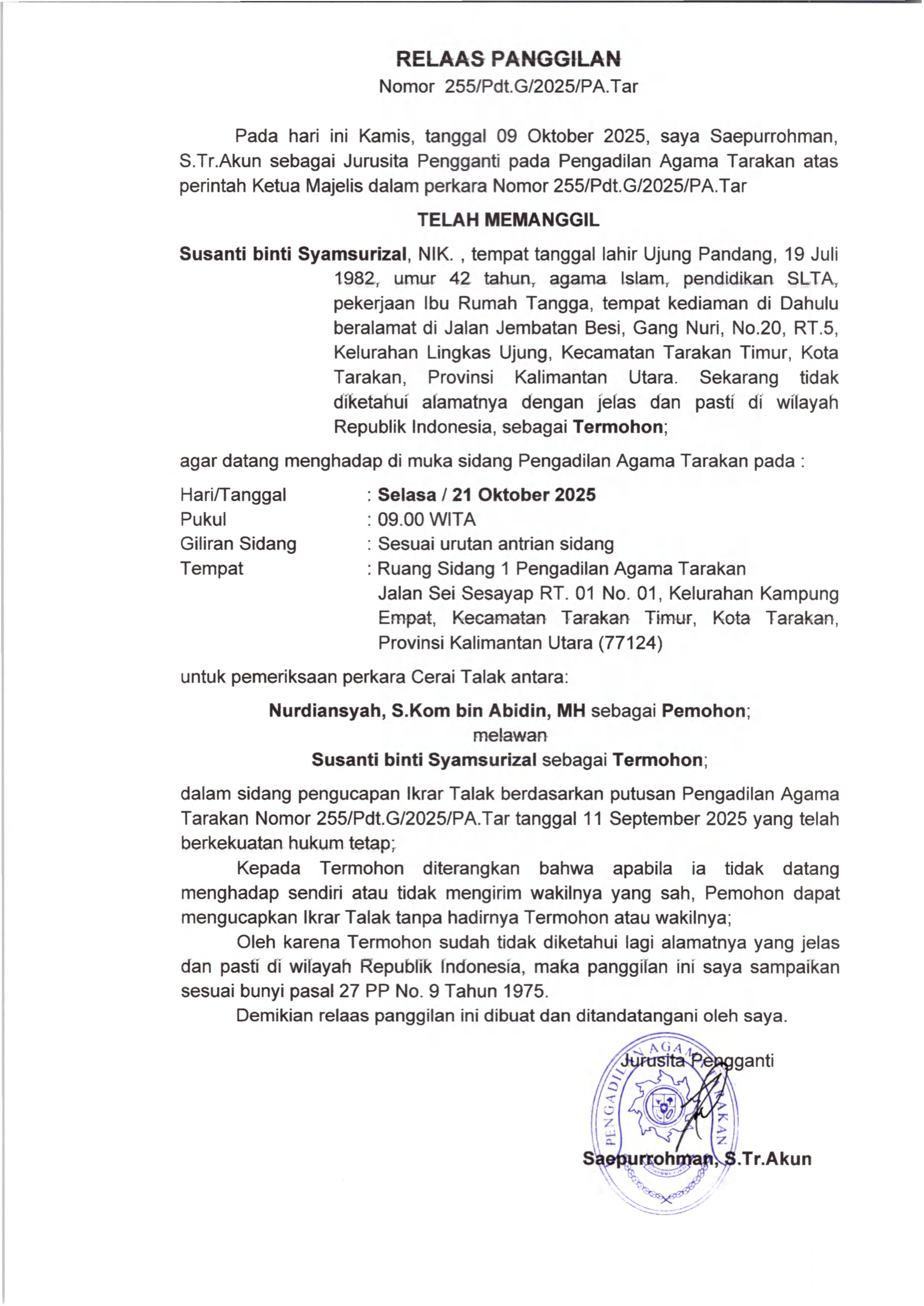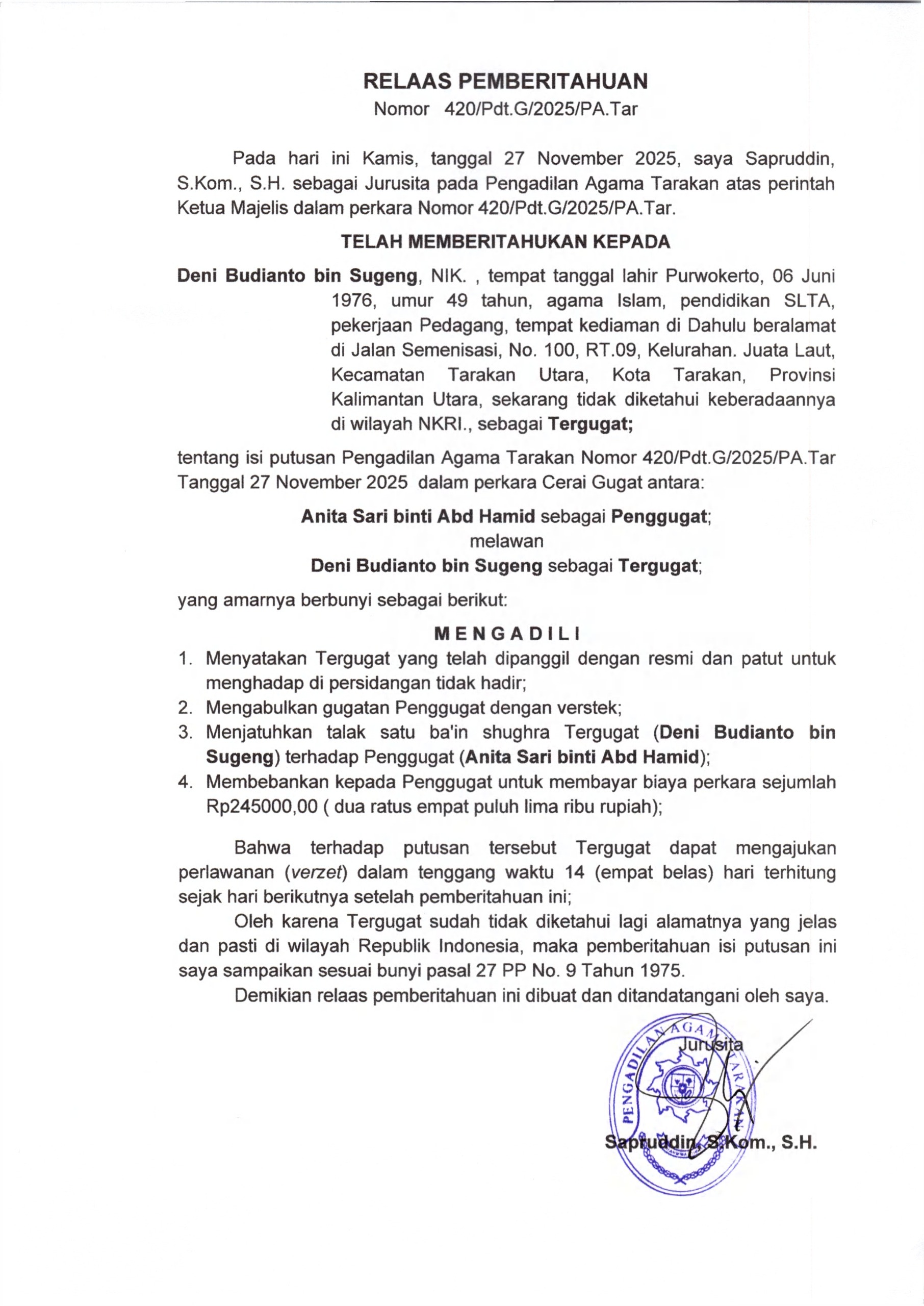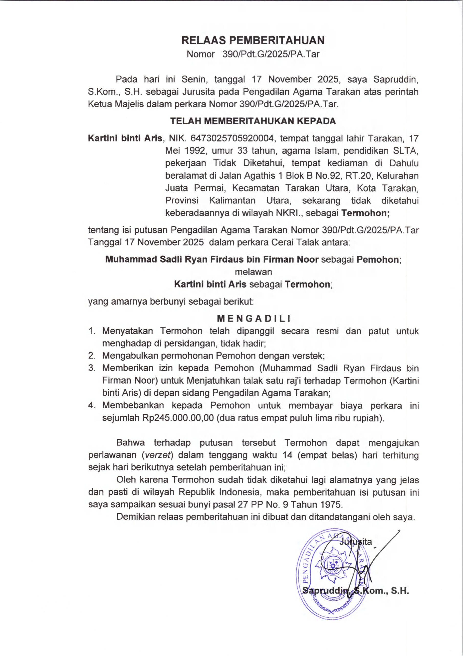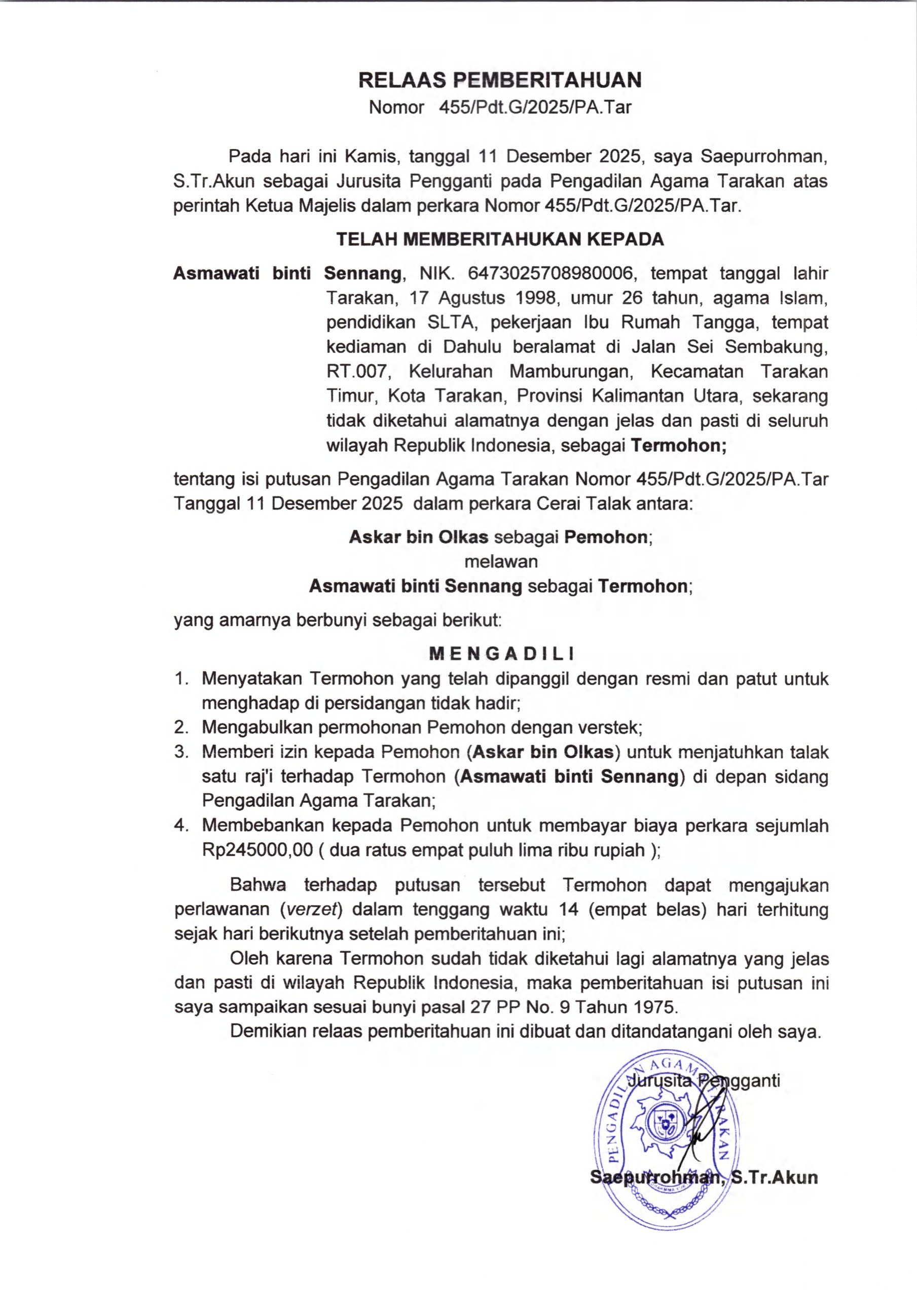 Perceraian Gaib : antara kehadiran pasangan dan kepastian hukum