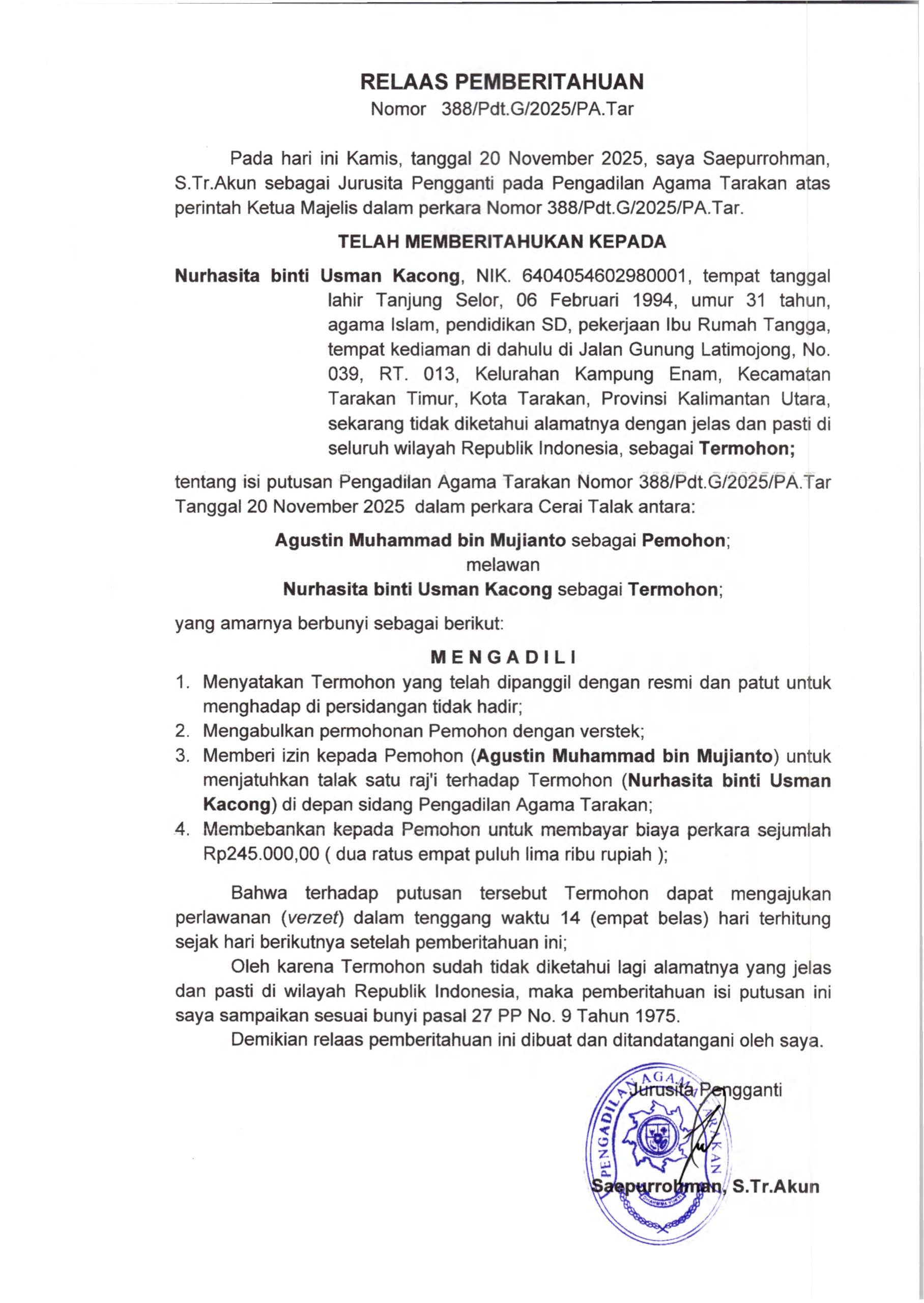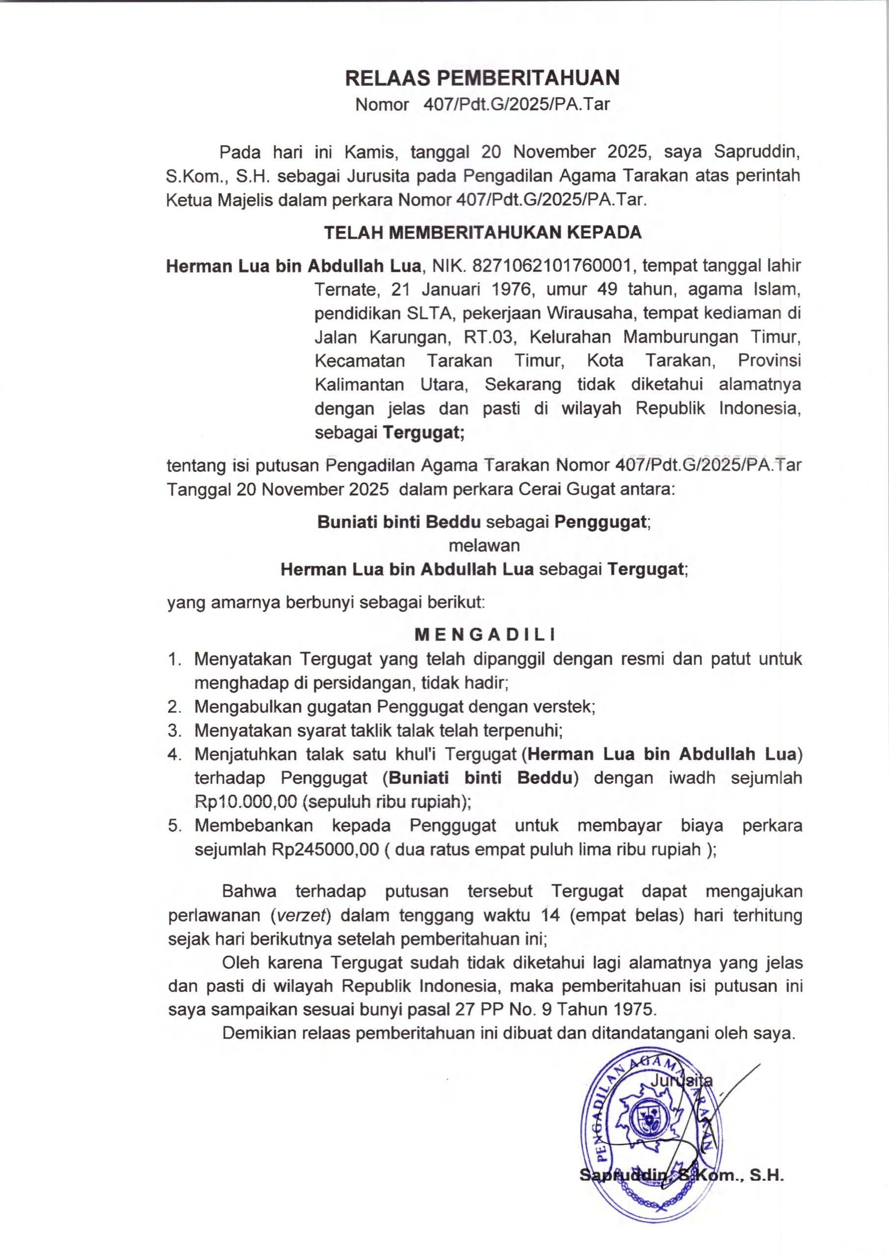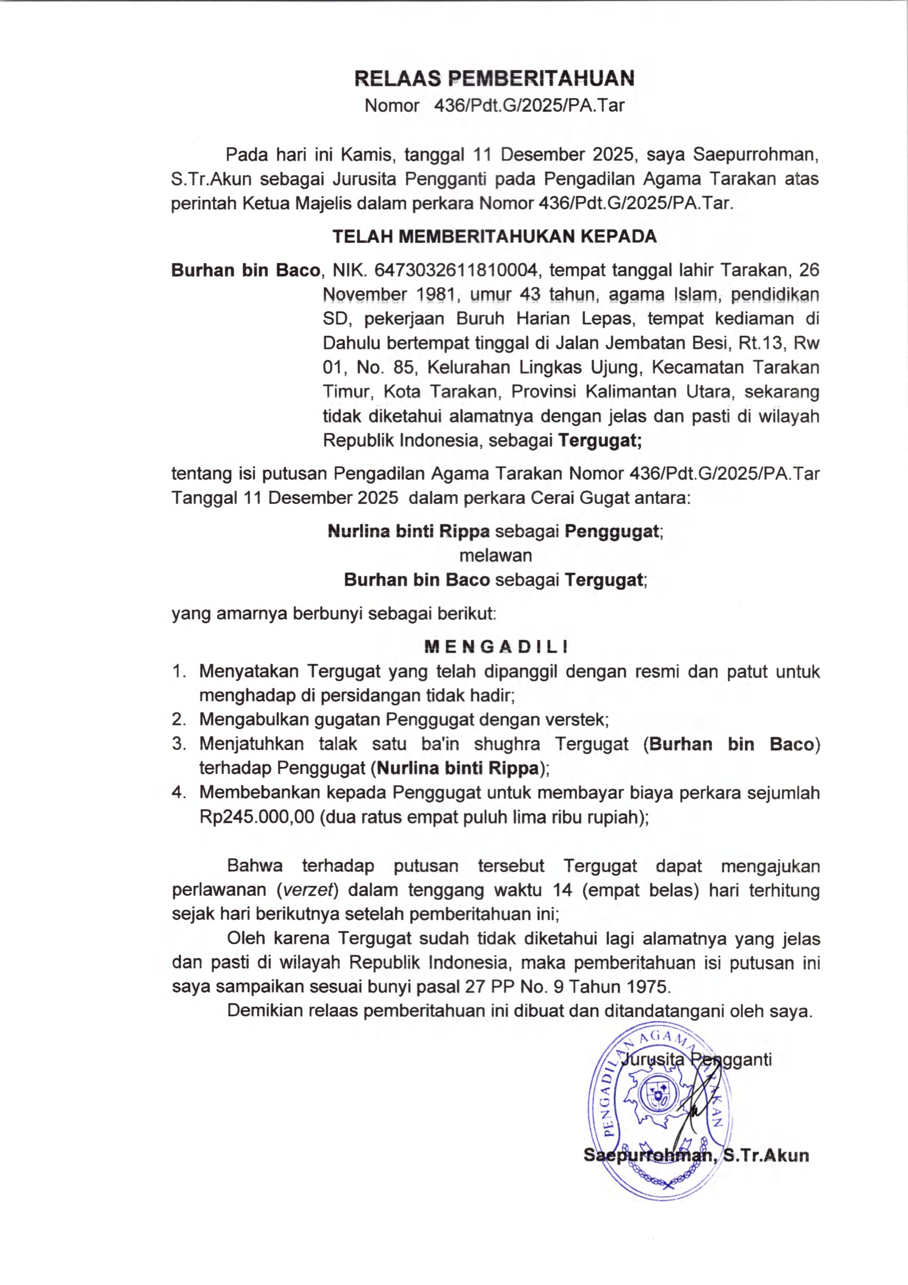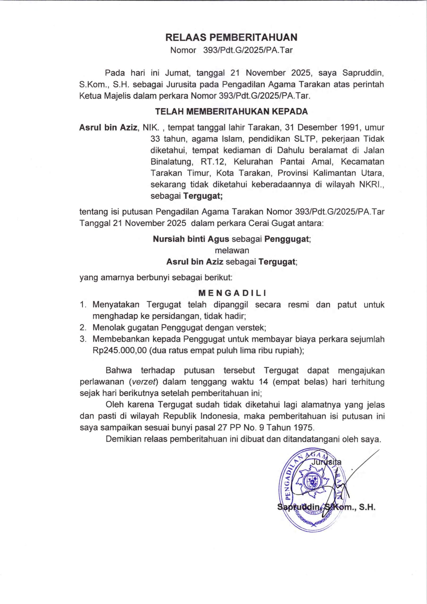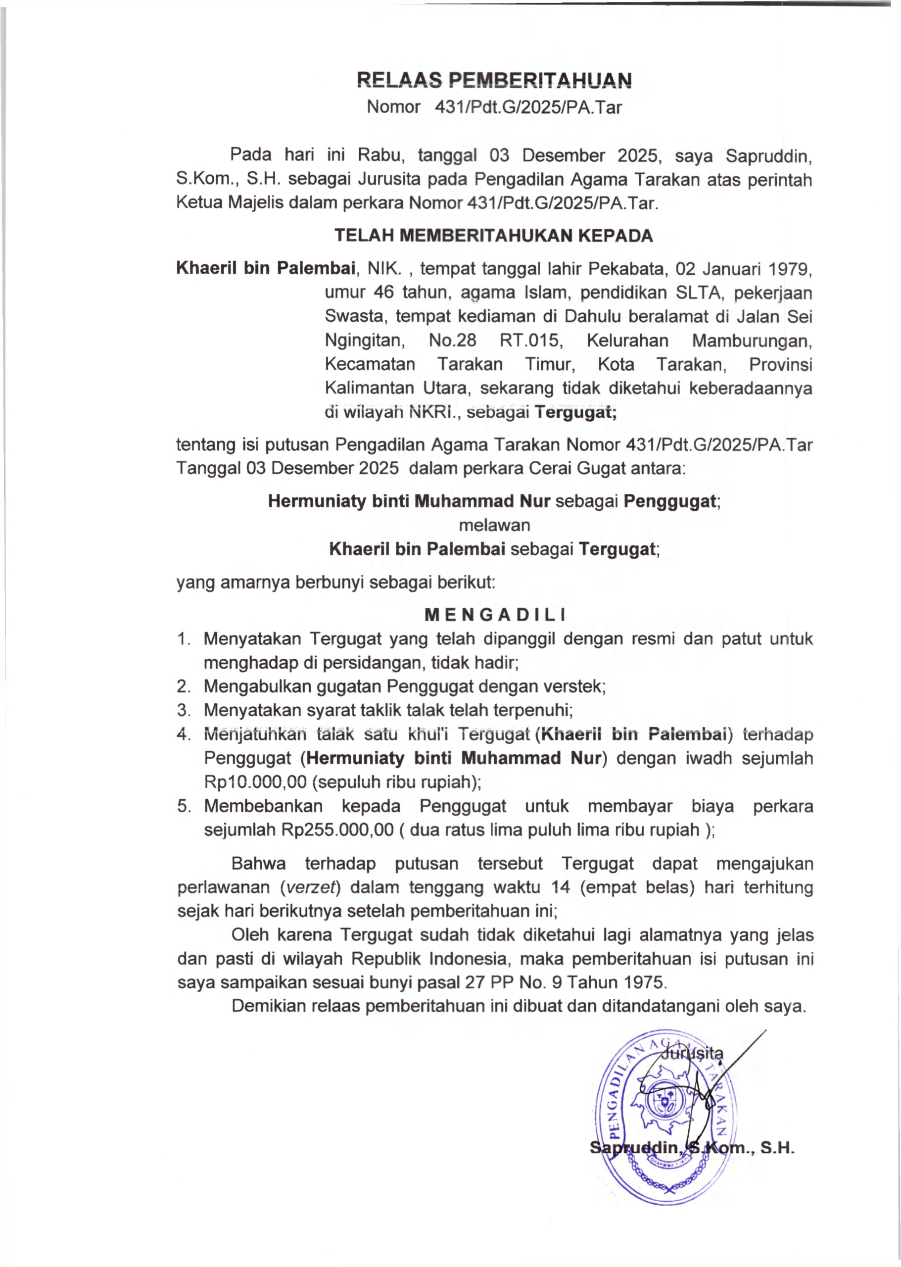 Perceraian Gaib : antara kehadiran pasangan dan kepastian hukum