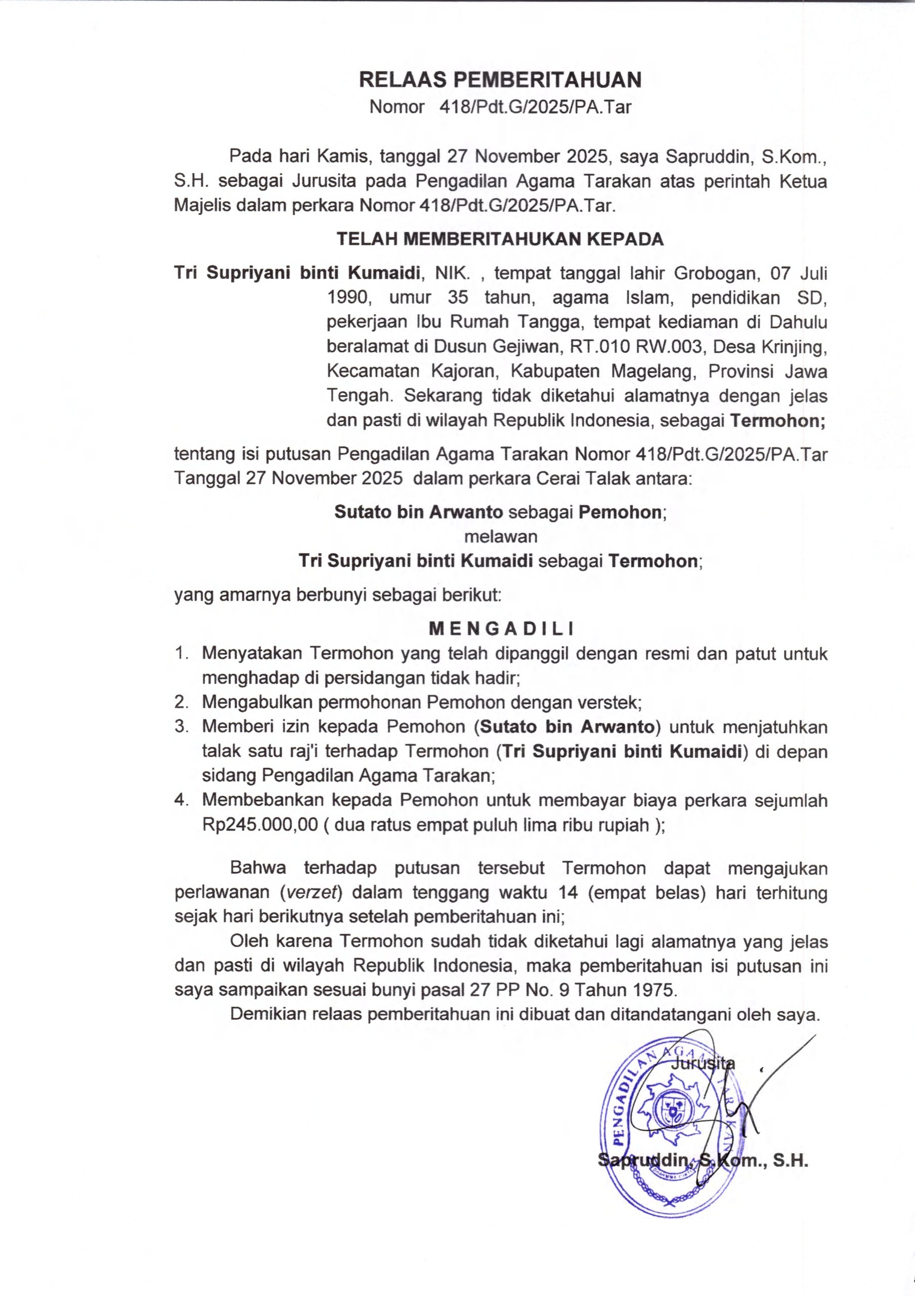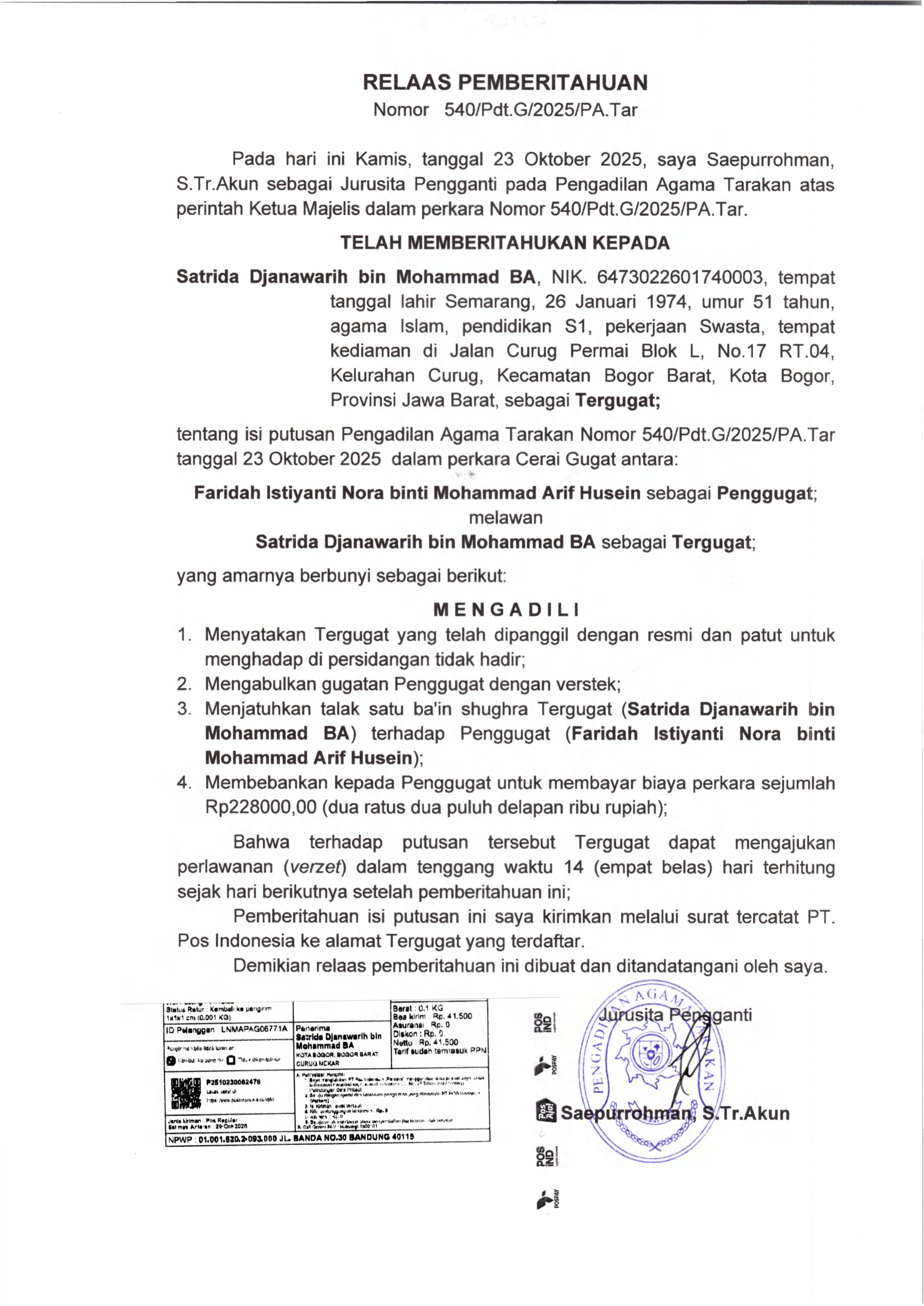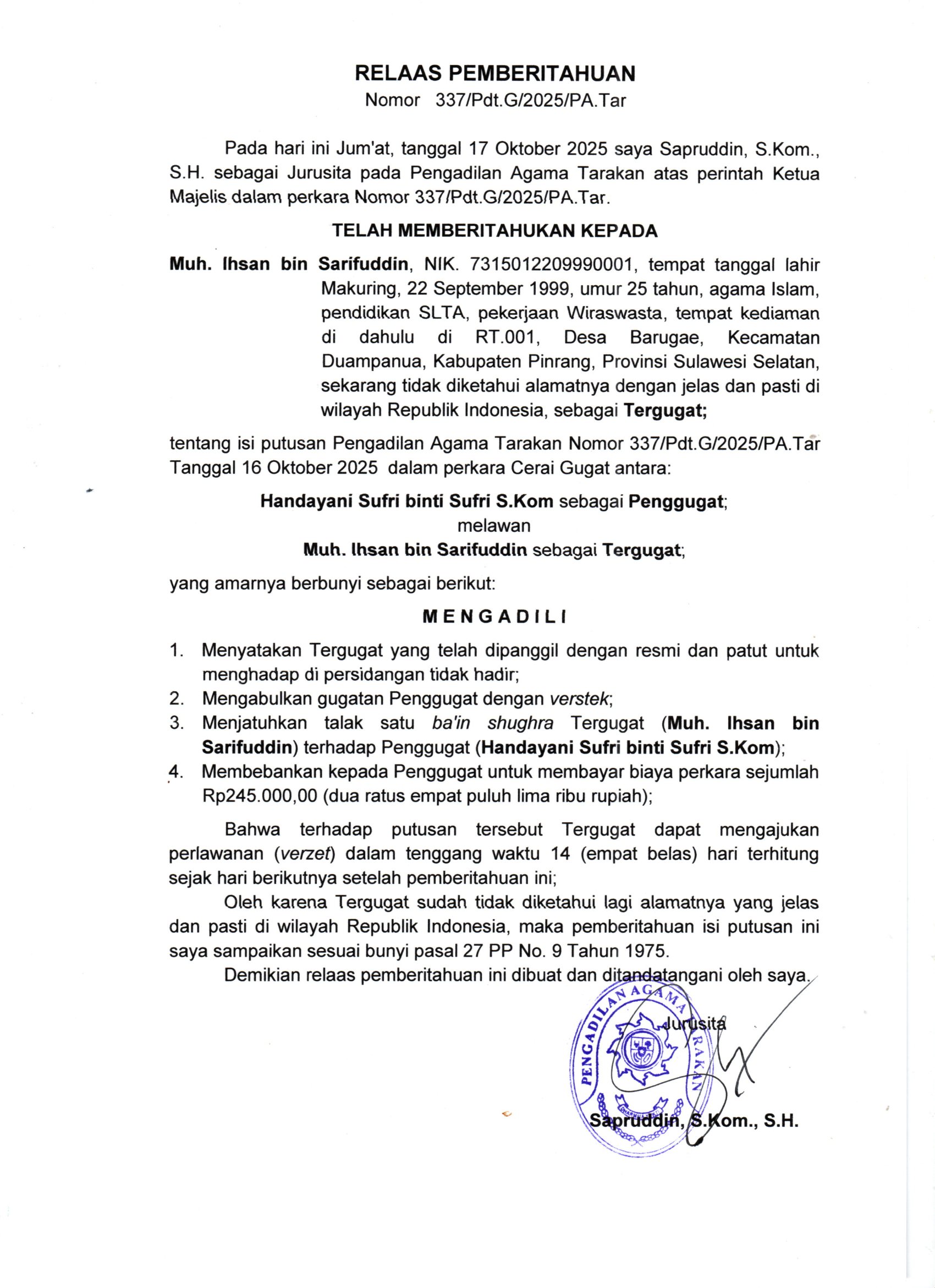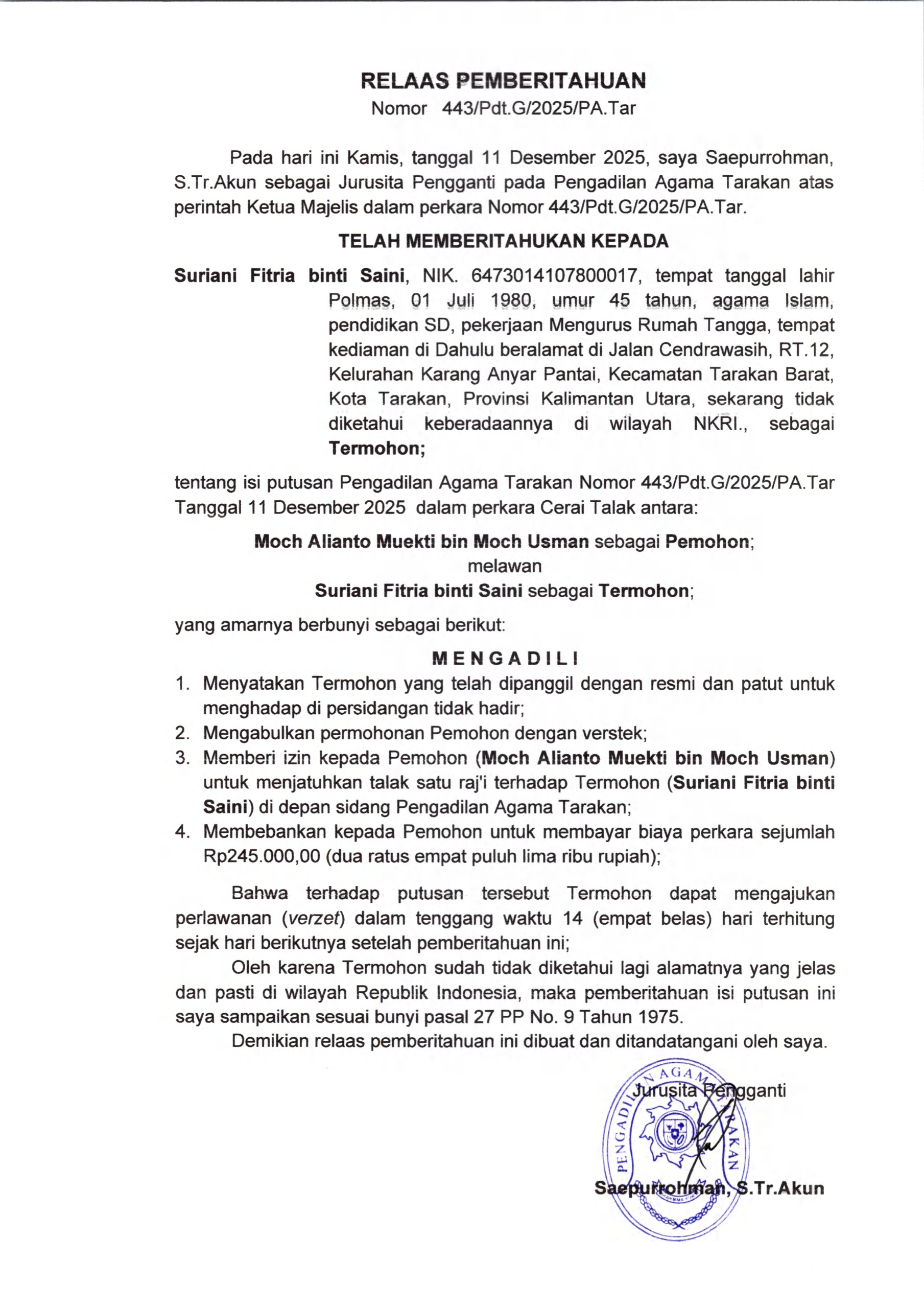 Perceraian Gaib : antara kehadiran pasangan dan kepastian hukum