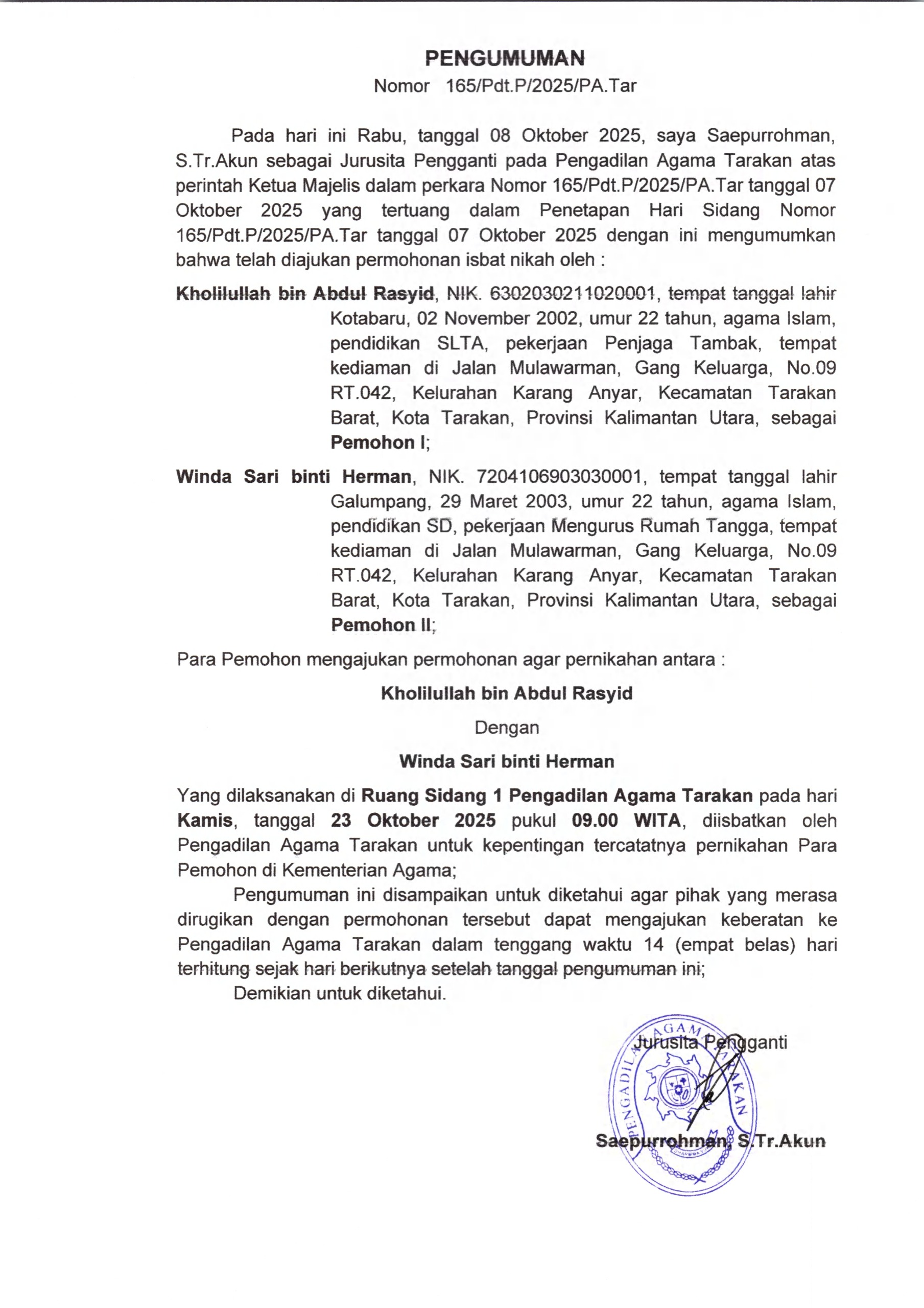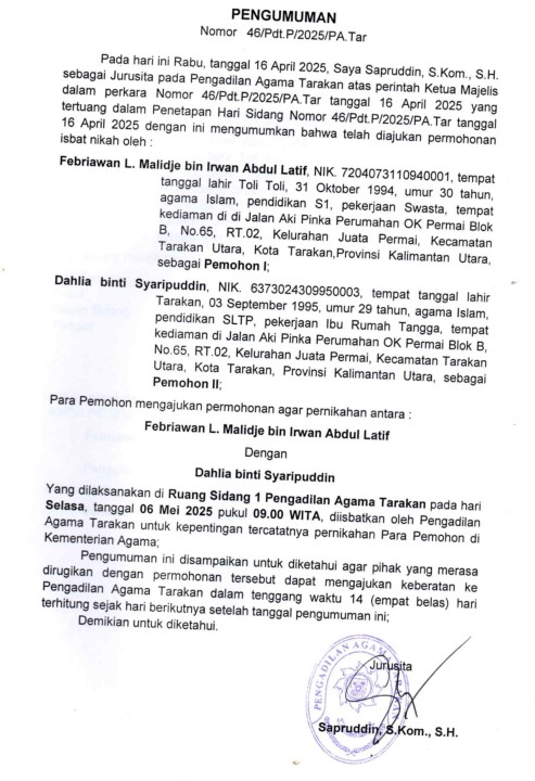 Laporan Data Perkara Disdukcapil Kota Tarakan