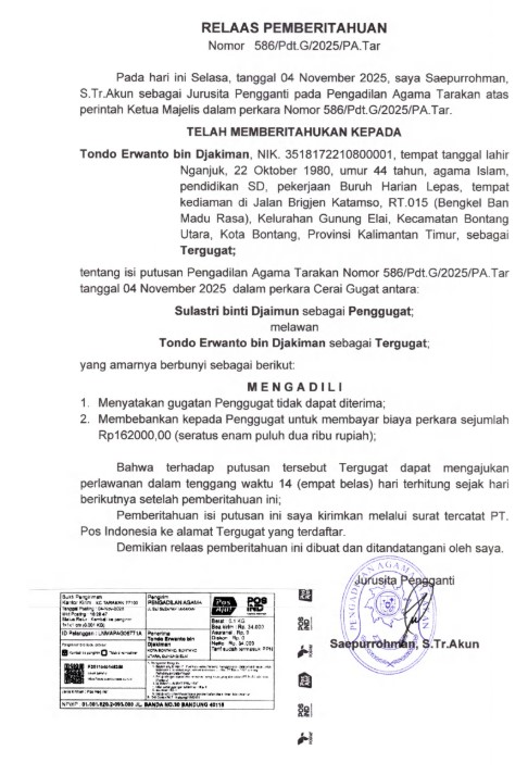 Pengadilan Agama Tarakan Menghadiri Undangan Rapat Paripurna XVII Dewan Perwakilan Rakyat Daerah (DPRD) Kota Tarakan Masa Persidangan I Tahun 2025/2026