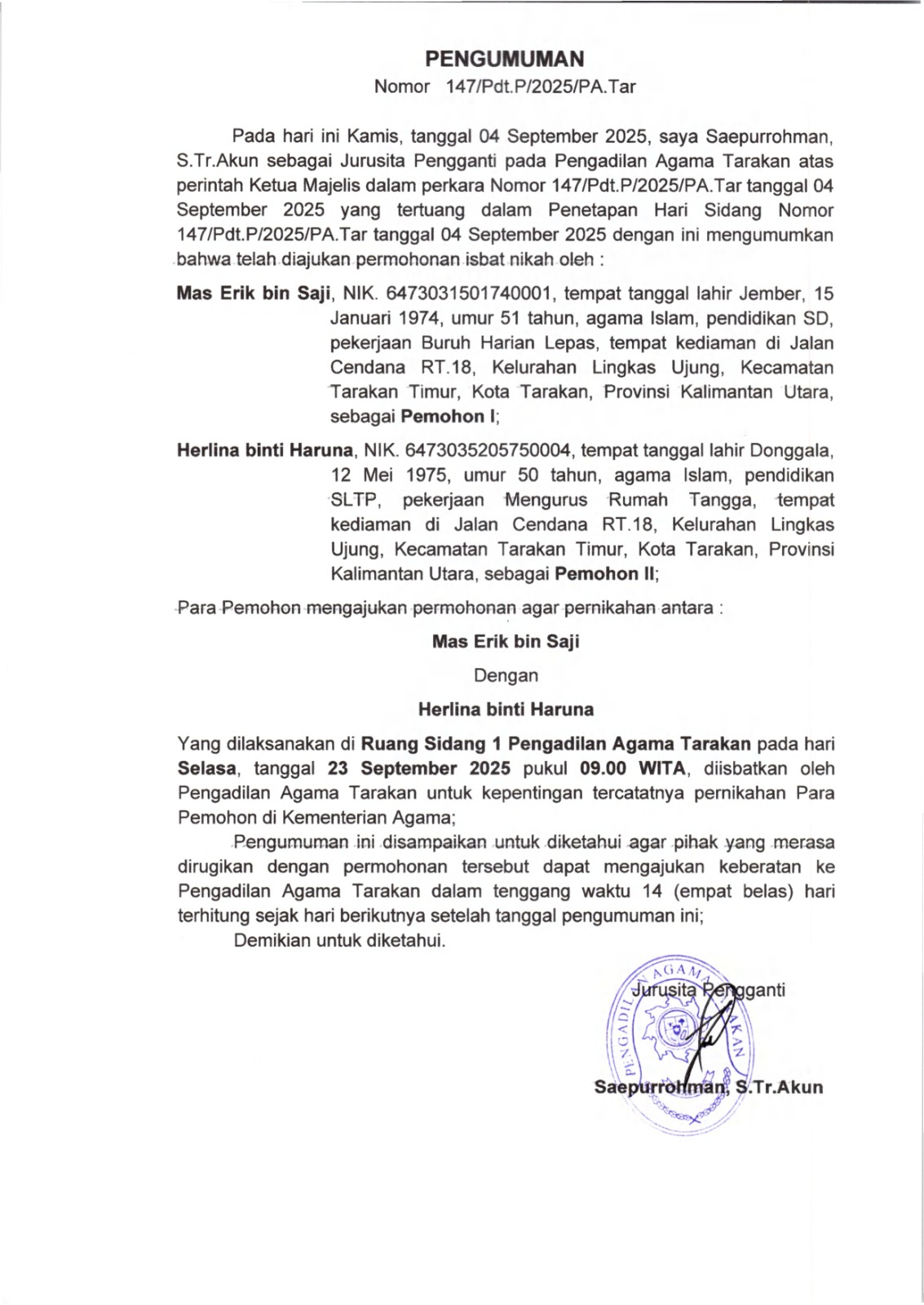 Panitera PA Tarakan Menghadiri Undangan Pelaksanaan Constatering dari Panitera PN Tarakan