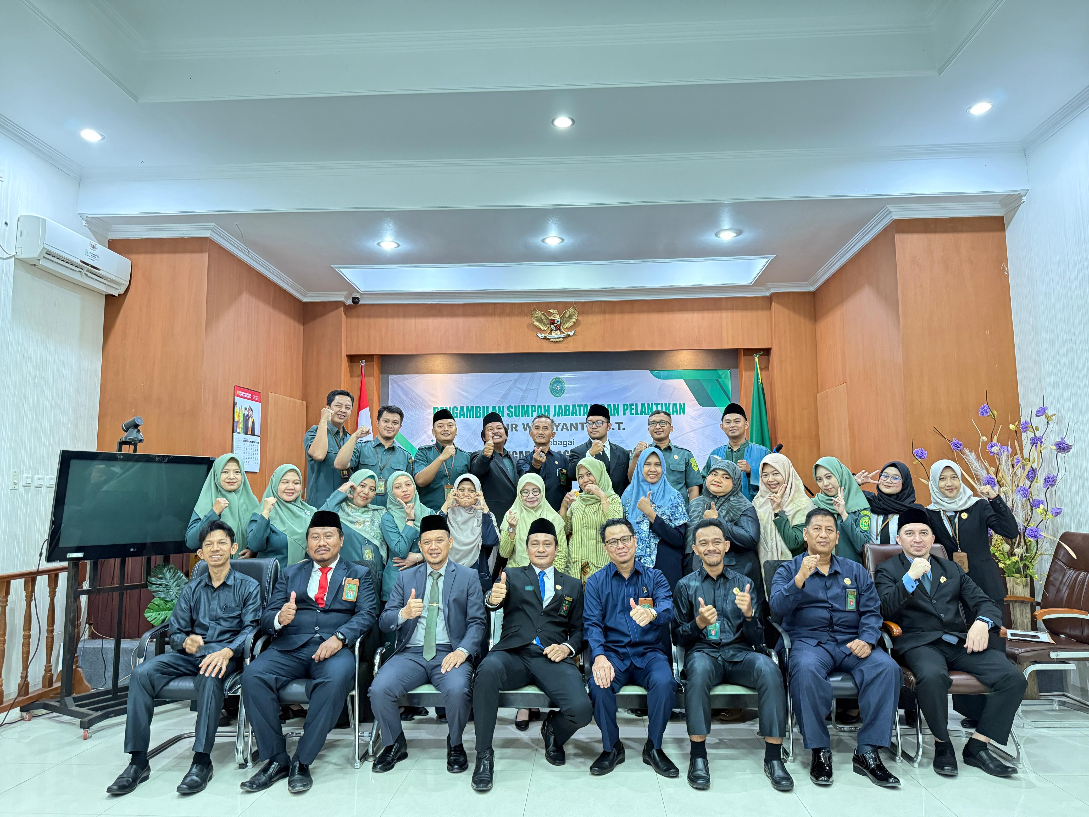 Tarakan, 30 September 2025 – Pengadilan Agama Tarakan menggelar acara pelantikan Sekretaris baru, Bapak Nur Wijayanto, pada hari ini di Ruang Sidang Utama Pengadilan Agama Tarakan. Acara berlangsung khidmat dengan dihadiri oleh Ketua, Wakil Ketua, para Hakim, Panitera, pejabat struktural dan fungsional, serta seluruh pegawai Pengadilan Agama Tarakan.