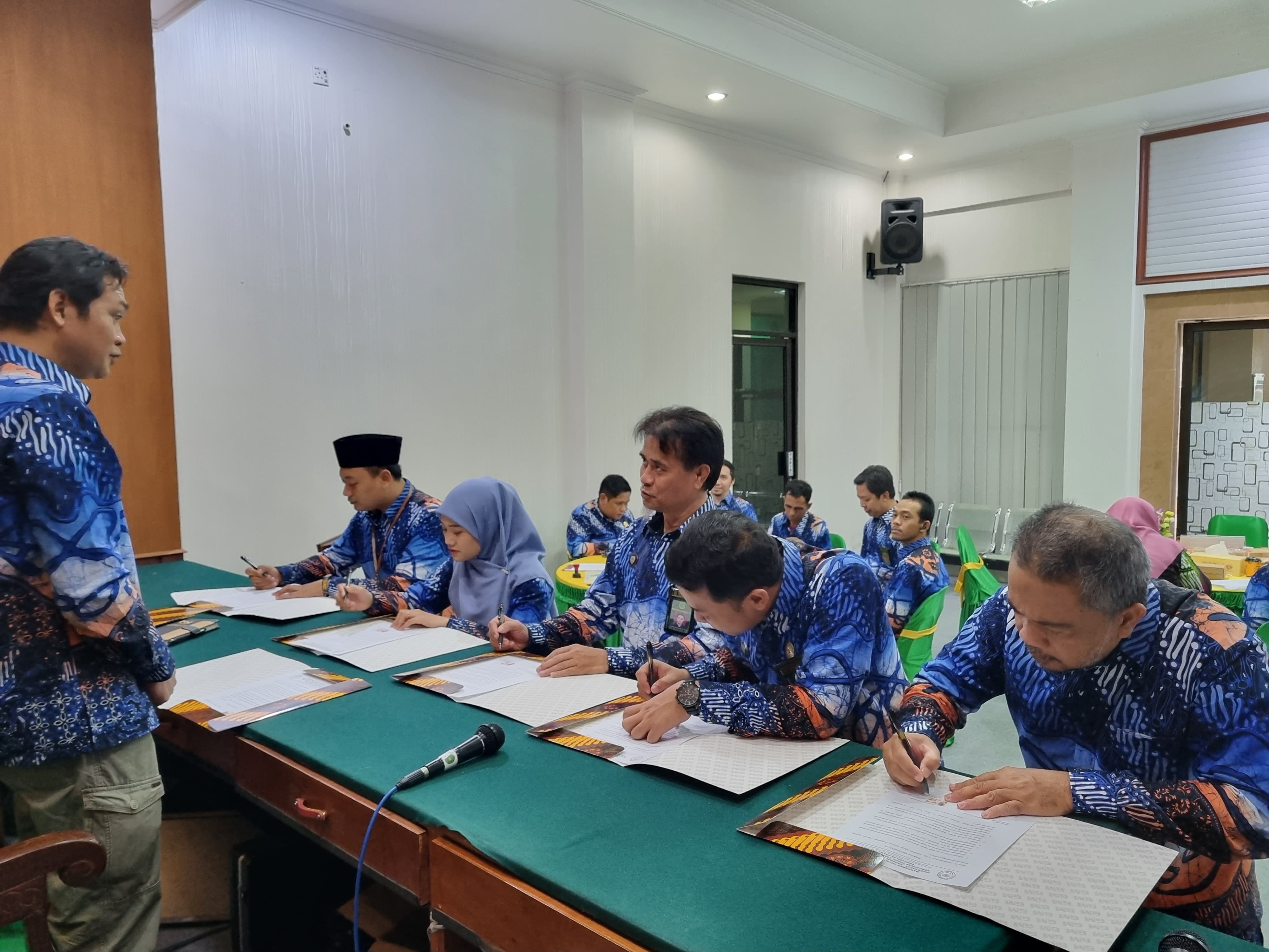 Penandatanganan pakta integritas merupakan upaya untuk mewujudkan Good Governance (pemerintahan yang baik)di lingkungan instansi peradilan. Kegiatan penandatanganan pakta integritas tersebut dirangkaikan dengan Rapat Kerja Tahun 2024 yang membahas terkait Evaluasi Penyusunan Program Kerja Pengadilan Agama Tarakan dan Rencana Aksi Pembangunan Zona Integritas di lingkungan Pengadilan Agama Tarakan. Rapat Kerja tahun 2024 sebagai momentum bagi setiap aparatur Pengadilan Agama Tarakan untuk menyusun dan menemukan ide-ide baru mengenai rencana kerja selama tahun 2024 serta menyusun Rencana Aksi Pembangunan Zona Integritas Tahun 2024 [IBCG]