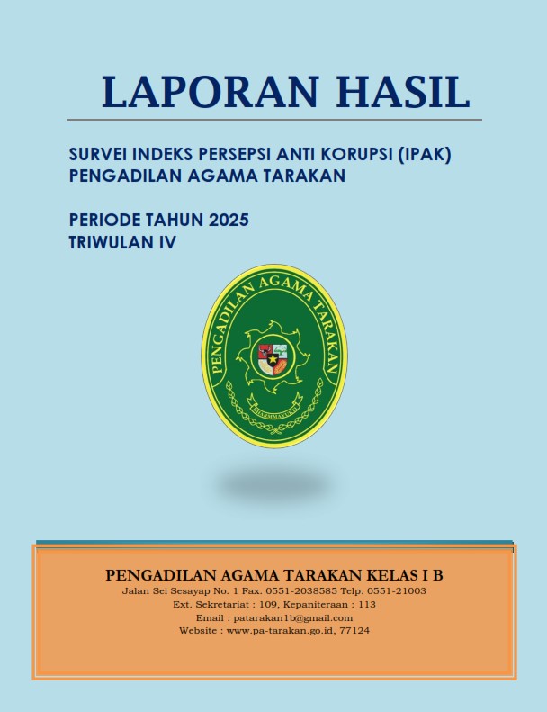 Dalam memberikan pelayanan, Pengadilan Agama Tarakan tidak menerima pemberian dalam bentuk apapun, baik kepada perorangan maupun lembaga. Apabila terdapat penyimpangan pada saat menerima layanan kami, agar melaporkan melalui Sistem Informasi Pengawasan (SIWAS) Badan Pengawasan Mahkamah Agung Republik Indonesia dengan mengakses link: https://siwas.mahkamahagung.go.id.